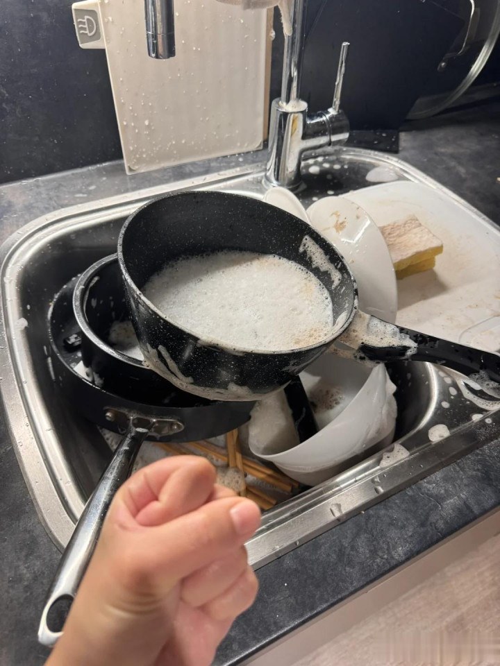 我发现:一顿饭用过的锅碗瓢盆,根本装不满洗碗机,这样直接洗的话,会白白的浪费水电以及洗涤剂。