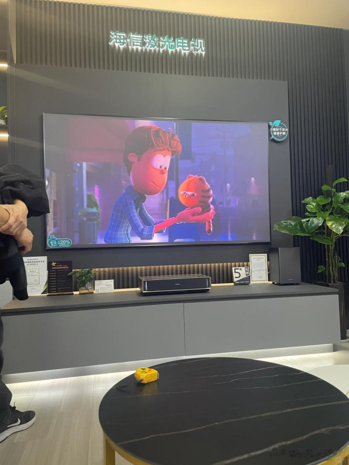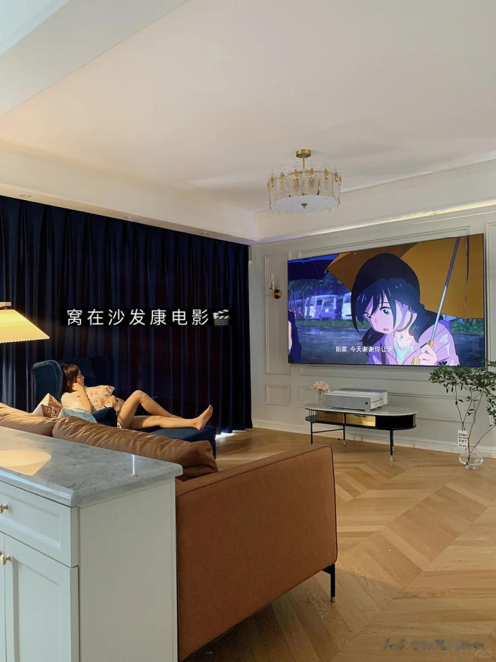 由于我很享受影院的那种氛围感,所以在装修客厅的时候,我毫不犹豫的选择了更有影院感的激光电视机。